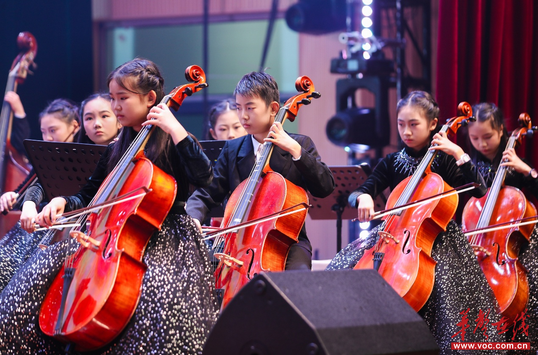 情景舞蹈《一河诗画 满城烟花》灵动呈现浏阳山水与烟火气,情景剧《欢迎您到浏阳来》传递热情好客的城市风貌,舞蹈《浏织谣·夏布》将传统工艺与舞蹈艺术相融。交响乐《红色的畅想》由新文学校学生交响乐团表演,编导万芳,67名小学3—6年级学生(平均年龄10岁)携手奏响,小提琴、大提琴、中提琴等16种乐器交织共鸣,以激昂而深情的旋律回望红色岁月、赞颂革命精神。第三篇章中,小品《魔幻手机》聚焦心理健康主题,舞蹈《正少年》彰显青少年蓬勃朝气,歌舞《我们的新时代》抒发对美好未来的憧憬。整场演出时长90分钟,气氛热烈、反响良好。