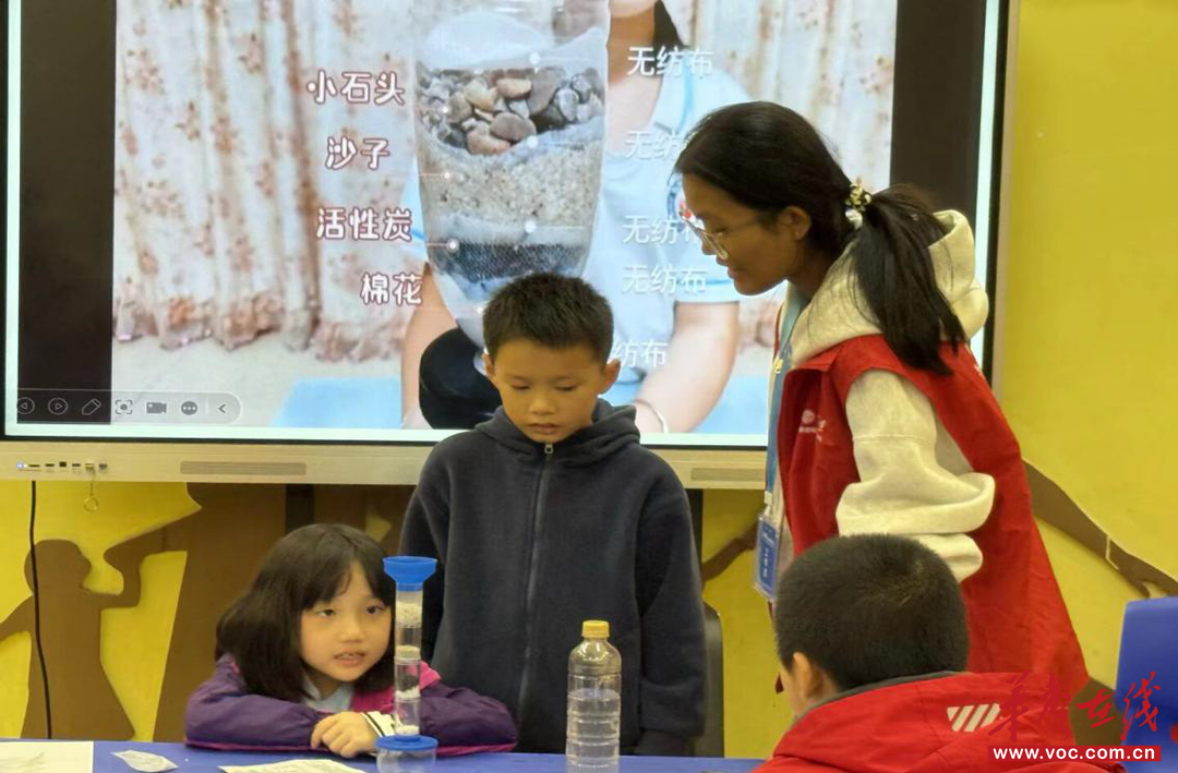 活动伊始,“童心护地球—青少年绿色成长计划”主题日引发了孩子们对水资源的首次深度探索。志愿者借助图文并茂的PPT,生动讲解了水的重要性与污水危害,揭开了水净化的初步原理。随后的“净水小实验”环节更是点燃了现场,孩子们在指导下亲手搭建简易净水器,目不转睛地看着浑浊的污水经过层层过滤变得清澈,惊奇之余纷纷举手希望再试一次。在紧接着的“水知识大闯关”中,孩子们争相抢答节水妙招,在欢乐互动中将节水知识牢记心间。