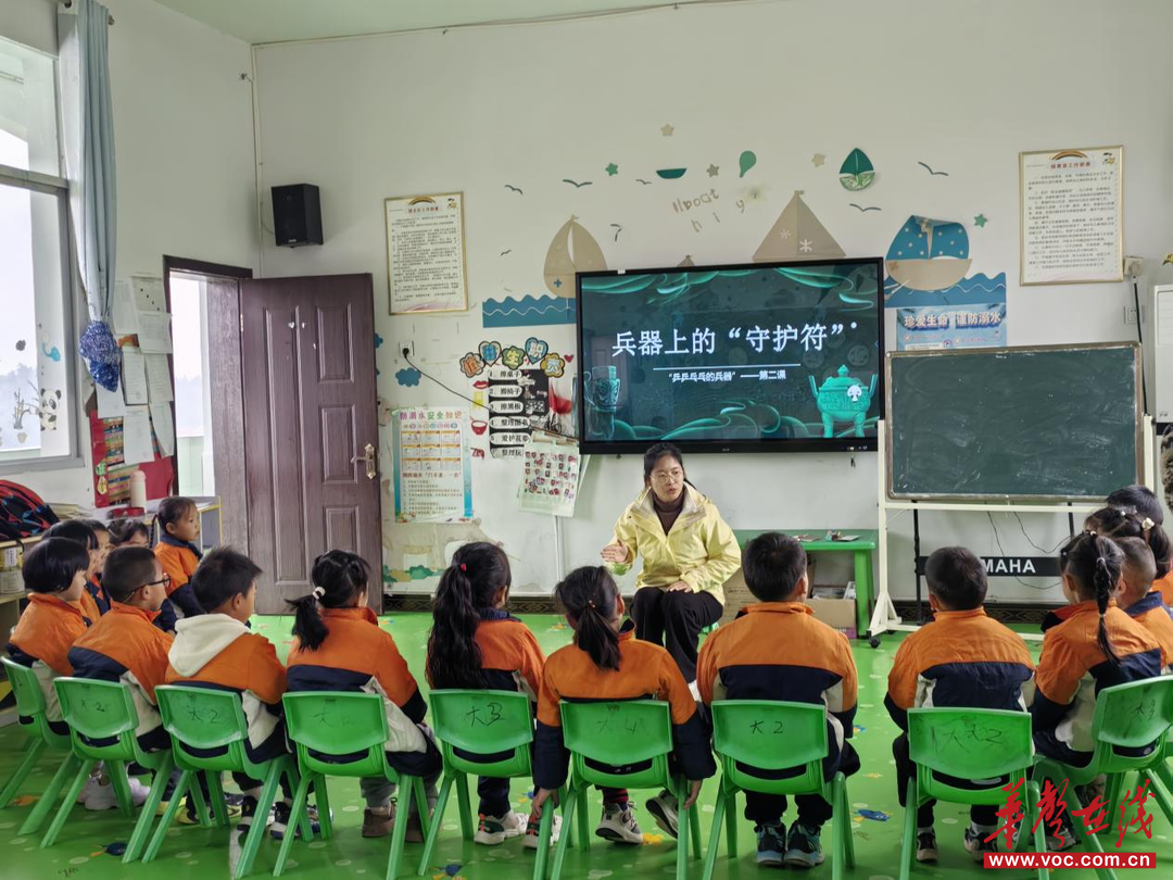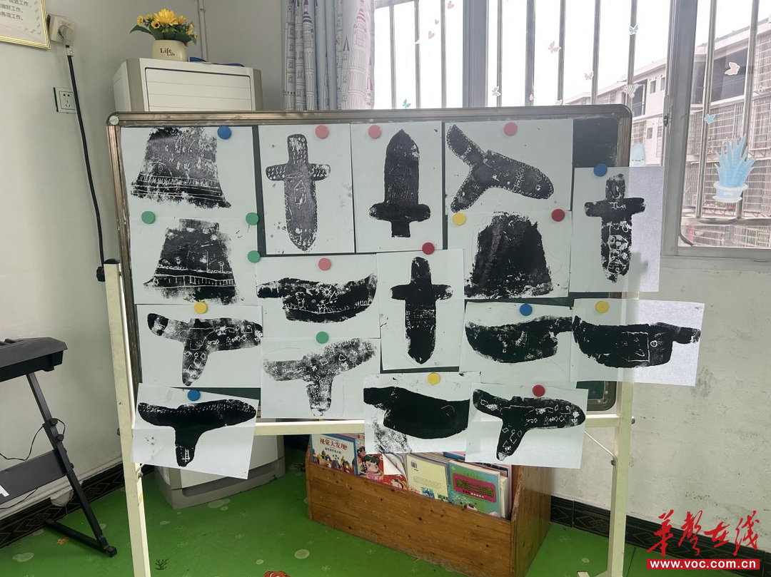 12月2日下午,帮扶活动正式启动。东岸锦城幼儿园副园长李丹简要解读帮扶方案后,刘苗老师带来大班美育公开课《兵器上的守护符》。刘苗以“探秘青铜兵器库”为情境,引导孩子们观察兵器图片,认识燕尾纹、目雷纹等纹样,了解其“象征勇敢、寄托祝愿”的内涵,感受纹样整齐排列的规律美;接着,她通过操作视频教授吹塑纸版画的刻、涂、印技巧。