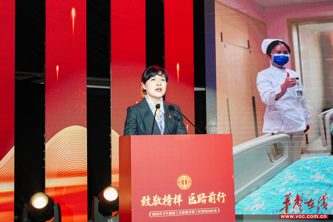 湖南省卫生健康委党组成员、副主任罗辉,湖南省总工会党组成员、经费审查委员会主任马晖,湖南省教育厅二级巡视员王红冰、湖南省卫生工会主任张敏、湖南中医药高等专科学校党委书记邓建中、湖南中医药高等专科学校党委副书记、校长周锦颢出席活动。