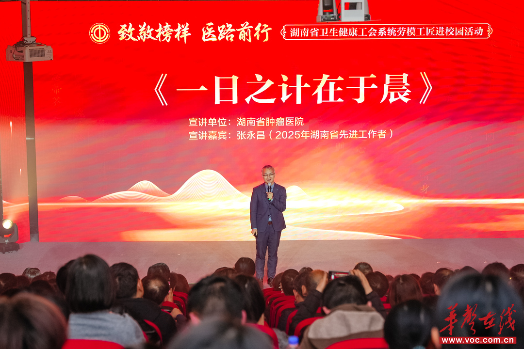 华声在线12月16日讯(通讯员 李康馨)12月16日下午,湖南省卫生工会“致敬榜样 医路前行”劳模工匠进校园活动在湖南中医药高等专科学校举行。五位来自医疗一线的劳模工匠代表走进校园,与近千名医学生分享他们的从医经历和职业感悟,为即将踏上医学道路的学子们点亮前行明灯。