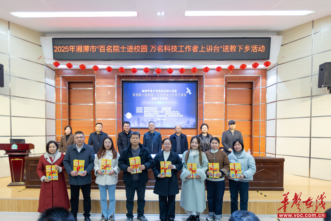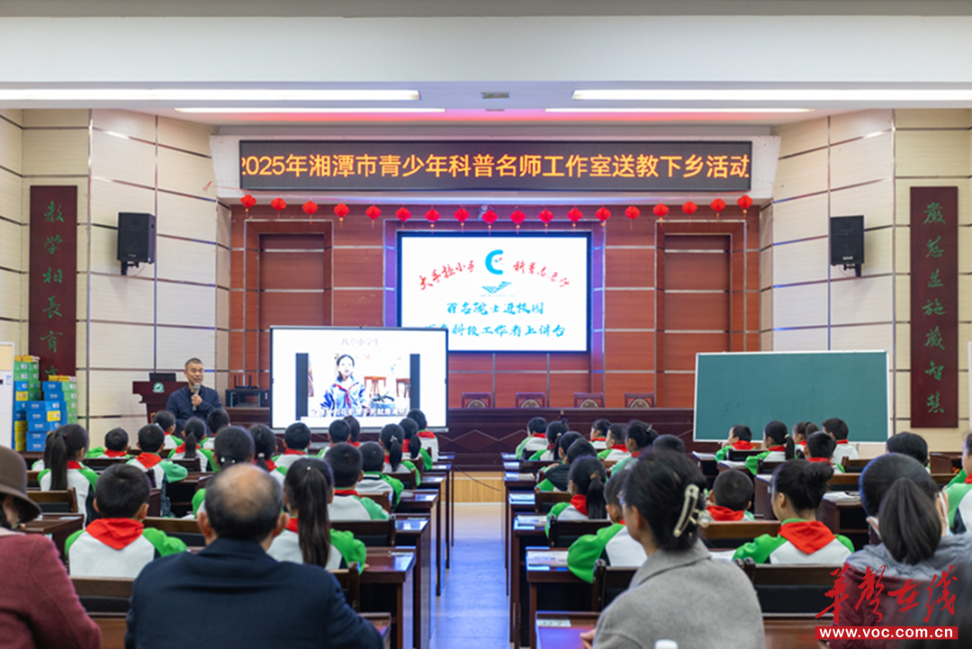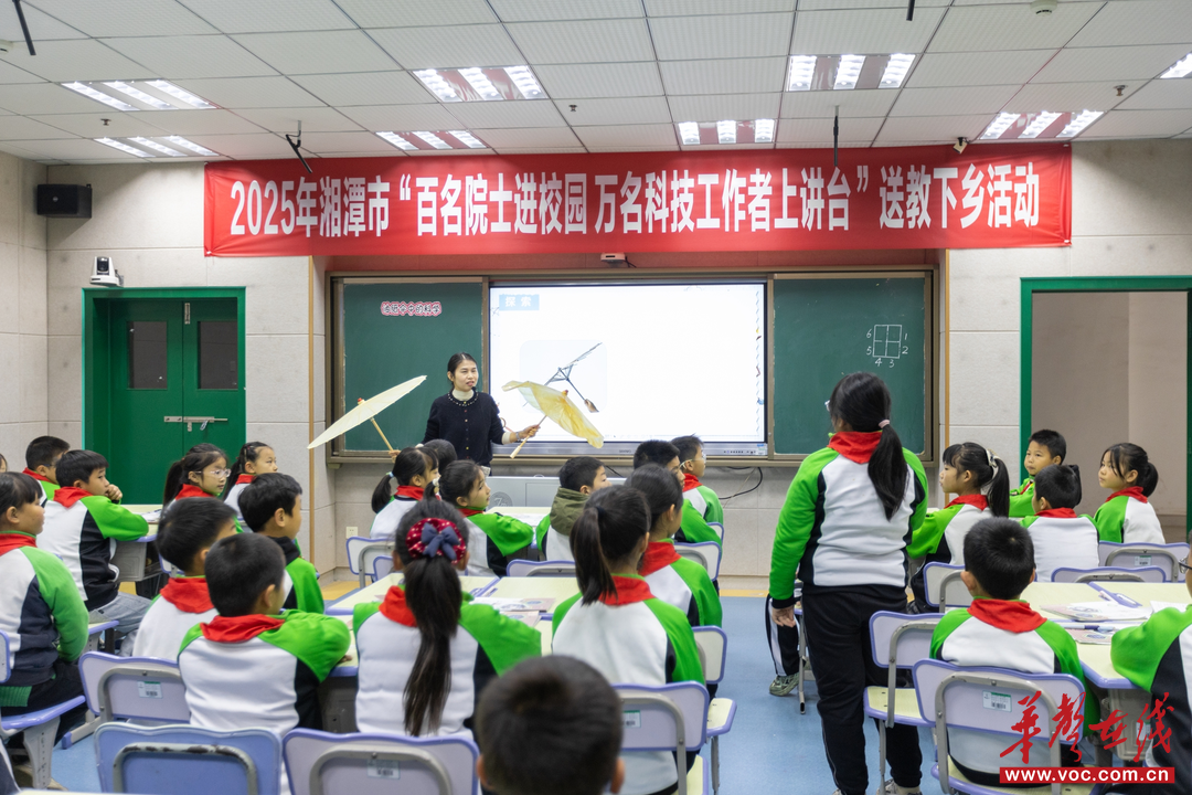 华声在线12月17日讯(通讯员 曾亮)近日,2025年湘潭市“百名院士进校园·万名科技工作者上讲台”送教下乡活动在岳塘区昭山和平小学、荷塘乡清水完小等六所乡村学校举行。湘潭市青少年科普名师工作室选送的20节科普课,让2600余名乡村青少年共享“科普大餐”。