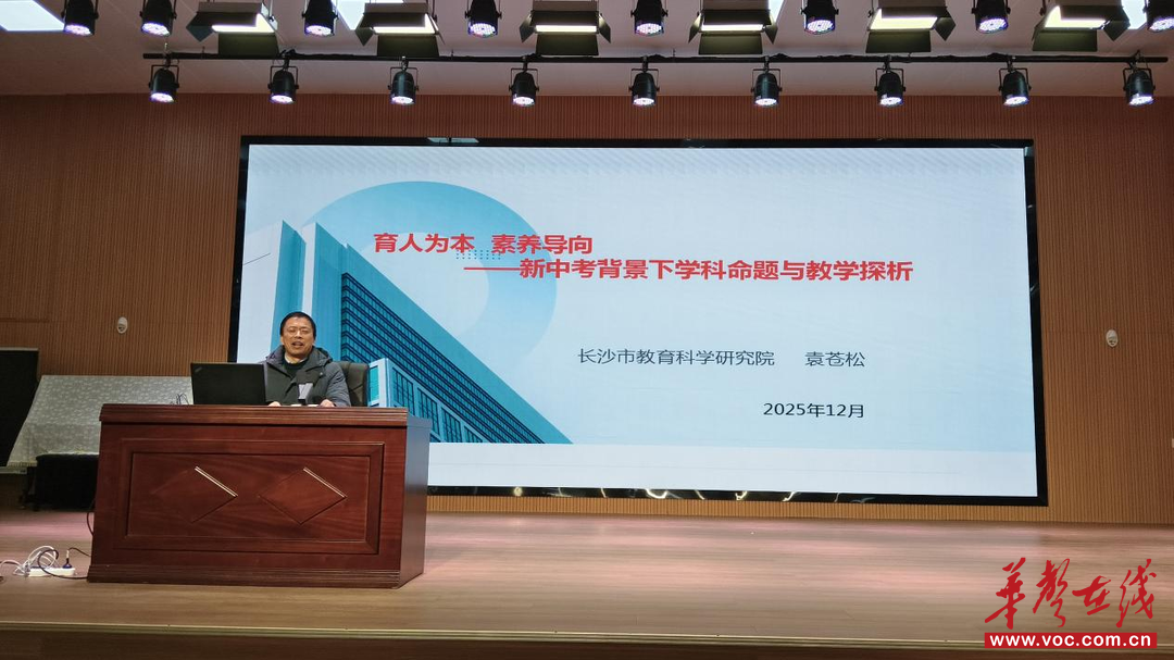 随后,湖南省特级教师、长沙市教育科学研究院副院长袁苍松老师以“育人为本,素养导向——新中考背景下学科命题与教学探析”为主题的讲座,围绕初中道德与法治科目开卷考试导向及方法,结合中考命题特点,深入解读了开卷考试的考查重点和备考策略,强调“开卷”绝非简单的“翻书”,而是对学科核心素养的深度考查。讲座结束后,袁老师还与现场教师进行了互动答疑,解答了大家在备考过程中遇到的困惑。