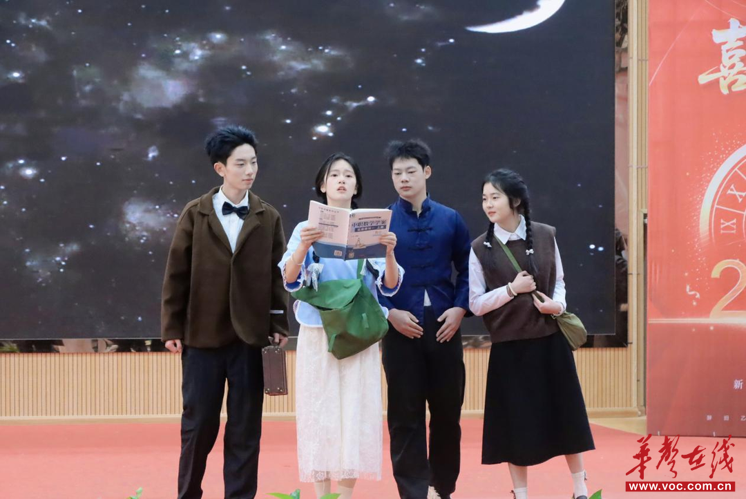 元旦汇演以“一脉家国情”“九州风雅韵”“今朝少年行”三个篇章展开,十四个精品节目精彩纷呈。《这束光》《时光里的母亲》传递家国情怀,《山河武韵》《天地龙鳞》彰显少年意气;《咏春》《弥渡山歌》等节目演绎传统文化之美,《告别手机综合症》等小品聚焦校园与社会热点,传递正能量;服装设计专业学子的《非遗熠华光模特秀》融入花瑶挑花等非遗元素,尽显匠心。