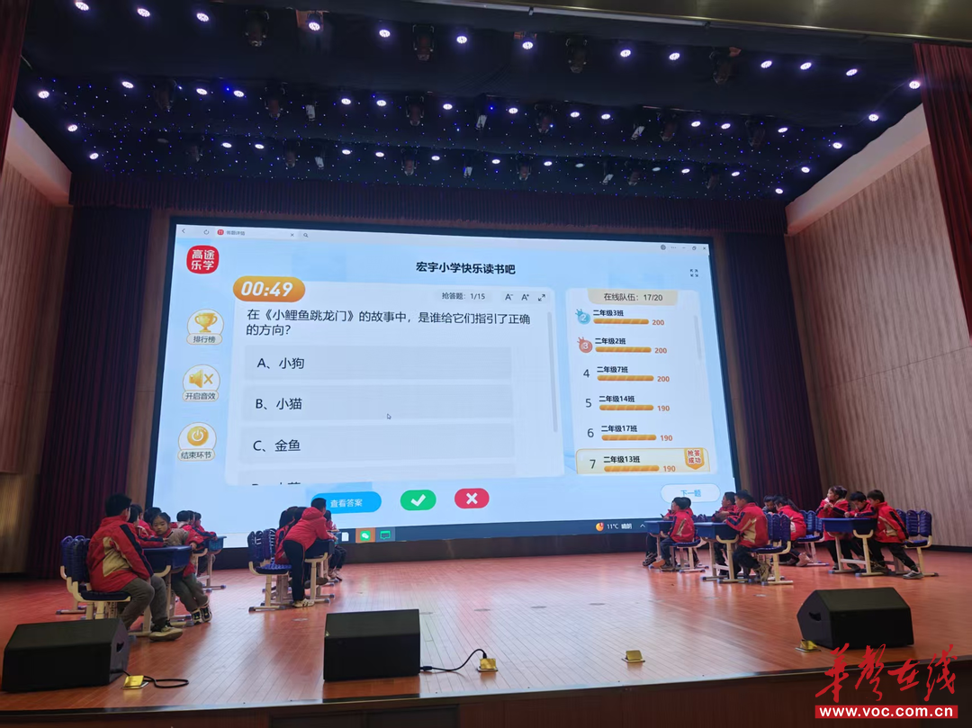 活动分三个阶段推进:12月12日至19日,学生通过线上公益名师微课,学习推荐书目的阅读方法;22日至23日,通过线上填空、选择题型评测选拔选手;26日下午,各班3名代表组成队伍齐聚学校报告厅参加决赛。