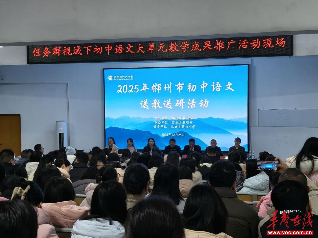 华声在线12月30日讯(通讯员 李赟)近日,郴州市初中语文送教送研暨任务群视域下大单元教学成果推广活动在临武县第六中学(简称:临武六中)成功举行。活动由郴州市教科院主办,临武县教育局承办,以优质课展示、成果分享、点评交流为载体,让新课标理念下的教学创新在县域课堂落地生根。