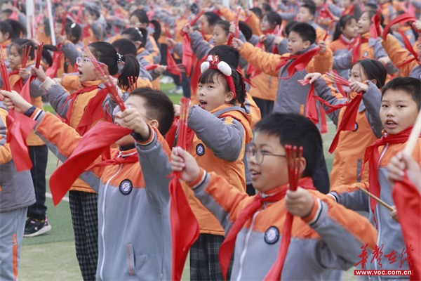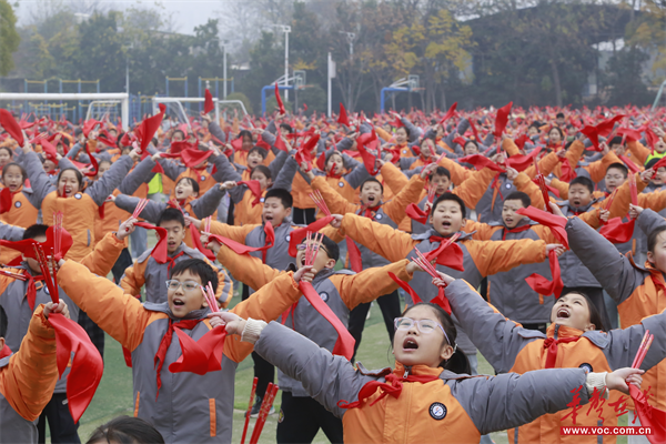 操场上,近四千名天元师生手持舞蹈筷,整齐列队,随着激昂旋律奏响,舞步铿锵有力,恰似策马奔腾,向着2026年昂首迈进。红绸如烈焰翻腾,在半空划出热烈的弧线;舞蹈筷敲击出整齐划一的节奏,与学子们的呐喊声交织成雄浑乐章。每一个动作都饱含力量,每一寸肢体都舒展昂扬。千影齐动间,尽显少年意气风发,将骏马奔腾的豪迈、逐梦新年的热忱与蓬勃朝气演绎得淋漓尽致,震撼人心。