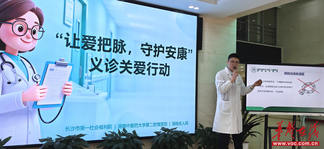 华声在线1月17日讯(通讯员 周真莉)为彰显医者社会责任,弘扬雷锋精神,关爱老年群体及社会特殊需求者,1月16日上午,湖南名人网联合湖南中医药大学第二附属医院创面修复科,走进长沙市第一社会福利院,为院内老人、孤残青年及工作人员带来了一场专业贴心的中医诊疗与健康咨询服务。长沙市第一社会福利院党委书记易荣出席活动,院党委委员、副院长何杰致欢迎辞。