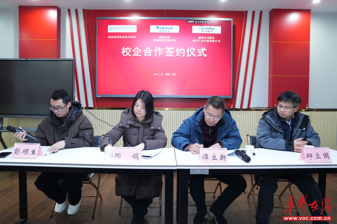 华声在线1月27日讯(通讯员 李雄)近日,由全国新一代自主安全计算系统行业产教融合共同体与全国新一代智能信息系统行业产教融合共同体联合指导,湖南信息职院、拓维信息系统股份有限公司(以下简称“拓维信息”)及旗下子公司湖南开鸿智谷数字产业发展有限公司(以下简称“开鸿智谷”)联合承办的“2026开放原子校源行师资培训暨全国开源鸿蒙技术应用开发寒假师资培训(湖南站)”在湖南信息职院顺利举办。湖南信息职院党委委员、副院长谭立新,拓维信息、开鸿智谷产业与人才发展部总裁邓娟及校企代表参加开班仪式。