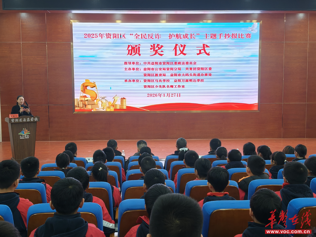 华声在线1月28日讯(通讯员 胡慧芝 熊艳) 为深入推进校园反诈宣传教育,切实增强青少年防范诈骗的意识和能力,守护学生健康成长,1月27日,益阳市资阳区成功举办了“全民反诈·护航成长”主题手抄报比赛颁奖仪式。本次活动共收到优秀手抄报作品185幅。