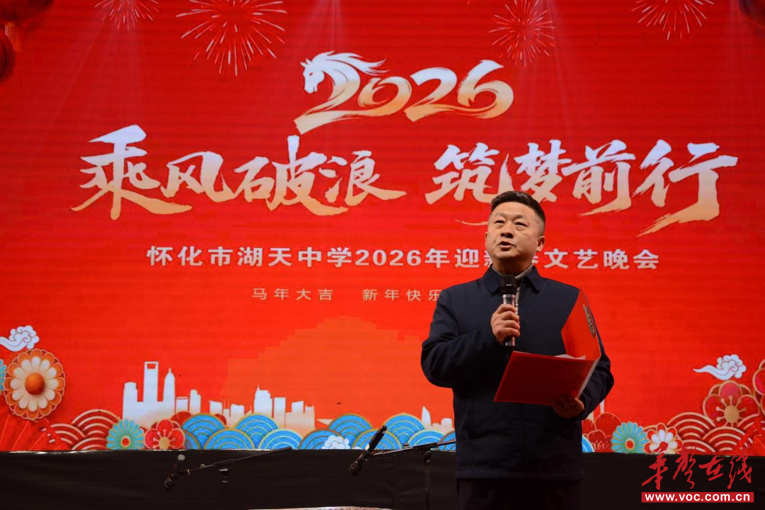 华声在线2月6日讯(通讯员 谌丽霖 供图 张爱民)岁序更替,华章日新。2月5日,怀化市湖天中学师生喜聚一堂,举办了以“乘风破浪,筑梦前行”为主题的迎新春文艺晚会。