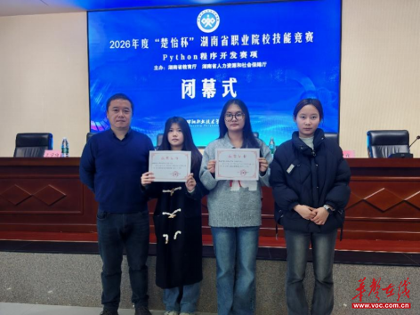 华声在线2月10日讯(通讯员 谭晶晶)近日,2026年“楚怡杯”湖南省职业院校技能竞赛高职组新一代信息技术赛——“Python程序开发”赛项在邵阳职业技术学院圆满落幕。湖南劳动人事职业学院参赛选手凭借扎实的专业功底与出色的临场发挥,荣获二等奖、三等奖各一项。成绩的取得,充分体现了学校对技能竞赛的高度重视,展现了师生团结协作、奋勇争先的良好风貌。