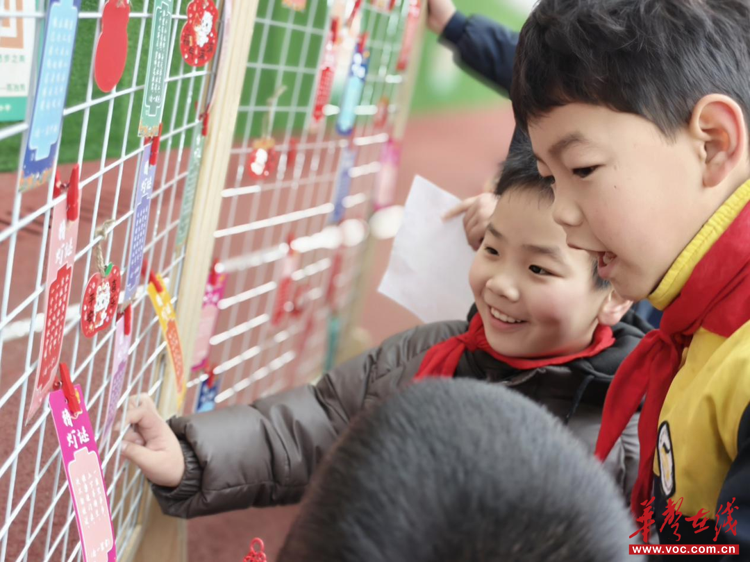 德育传承区里,趣味滚滚乐有着别样乐趣,滚动的易拉罐牵动着孩子们的心,赢得贴纸奖励的孩子,也有做俯卧撑的孩子,一个易拉罐激起孩子们的心绪起伏。“文明小使者”打卡处,孩子们主动向老师送上新年吉祥话,一句句暖心祝福,尽显文明有礼的良好风貌。