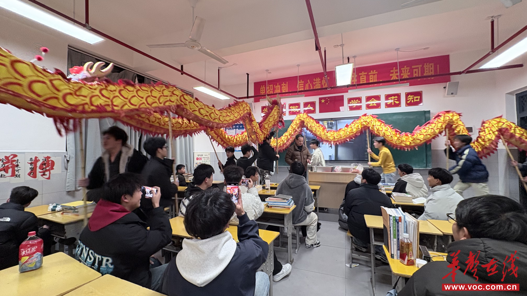 此次巡游途经学校综合楼、各个教室和实训大楼。活动中,龙狮队的同学们配合默契、步调一致,巨龙在他们手上翻腾起舞,或盘旋昂首,或俯身游走,游、腾、跃、翻、滚等动作行云流水,气势磅礴,栩栩如生;醒狮身姿矫健,时而眨眼探头,时而摇头摆尾,还走进教室与师生逗趣互动,把狮子的活泼俏皮、威猛灵动展现得淋漓尽致。大家纷纷拿出手机拍照记录,定格这喜庆、热闹的瞬间,并与龙狮热烈互动。