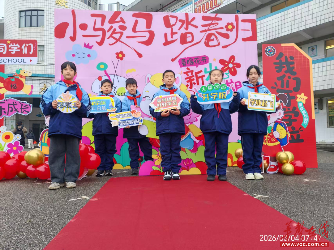 华声在线3月5日讯(通讯员 张洁婷)春风送暖,骏马归巢。3月4日,湘潭市岳塘区大桥学校以“小骏马踏春归”为主题,精心组织了2026年春季开学迎新活动。全体师生在温馨而富有仪式感的氛围中,开启了新学期的美好篇章。