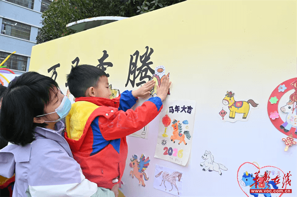 入园礼上,家长与孩子共同制作“小马”手工作品,组成集体画作《万马奔腾》,寓意新学期万象更新。典礼时,全园师幼齐聚一堂,举行了庄严的升旗仪式。园长送上马年祝福,鼓励孩子们如骏马般勇敢自信。教师代表与幼儿代表也相继发言,传递了积极向上的精神风貌。