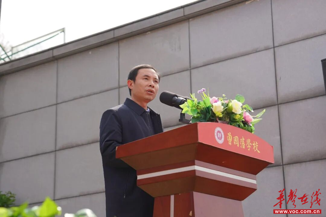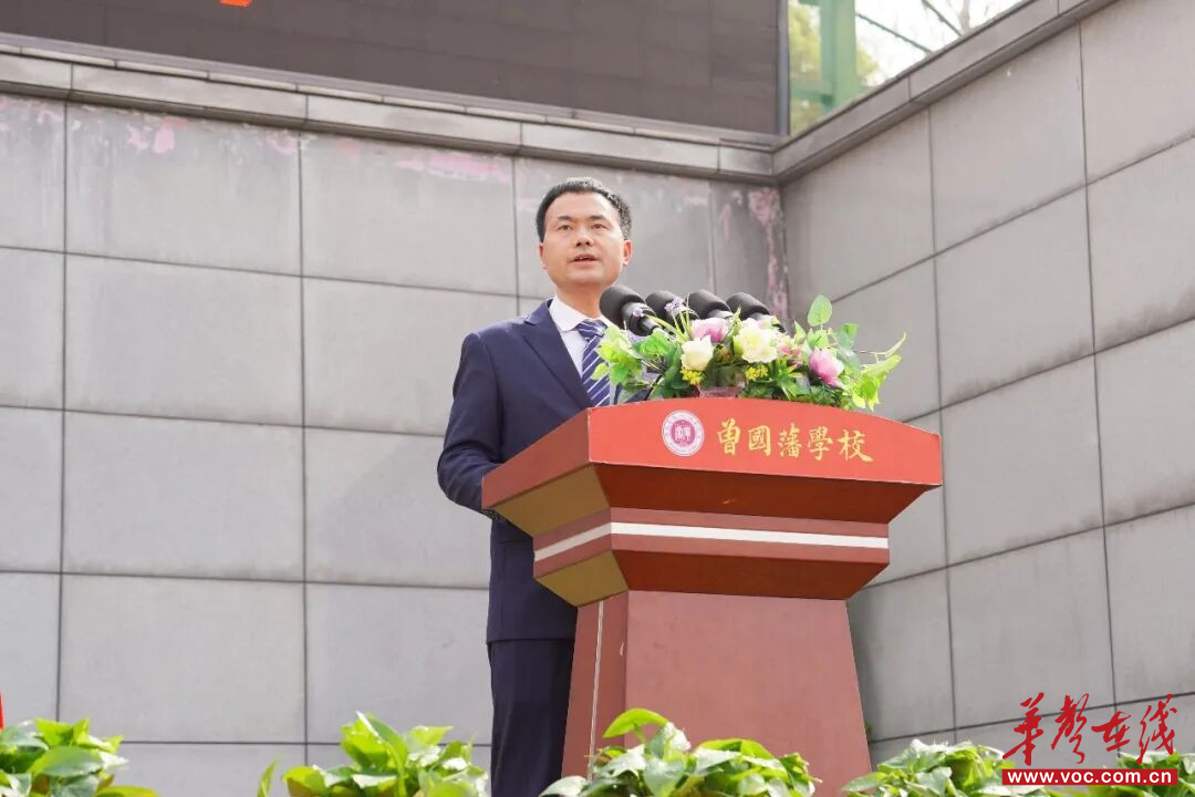 曾国藩学校校长王育龙作新学期开学工作报告。他以“质量立校,创新致远”为主题,向全体师生提出新学期要求:一是练好体质,让内心更有力量;二是读书要下苦功夫,做人要明事理;三是学好课本知识,开阔视野;四是立下远大志向,扛起对自己、家庭和国家的责任。王育龙勉励全体师生以实干筑牢根基,以高效应对挑战,共同书写国藩教育新篇章。