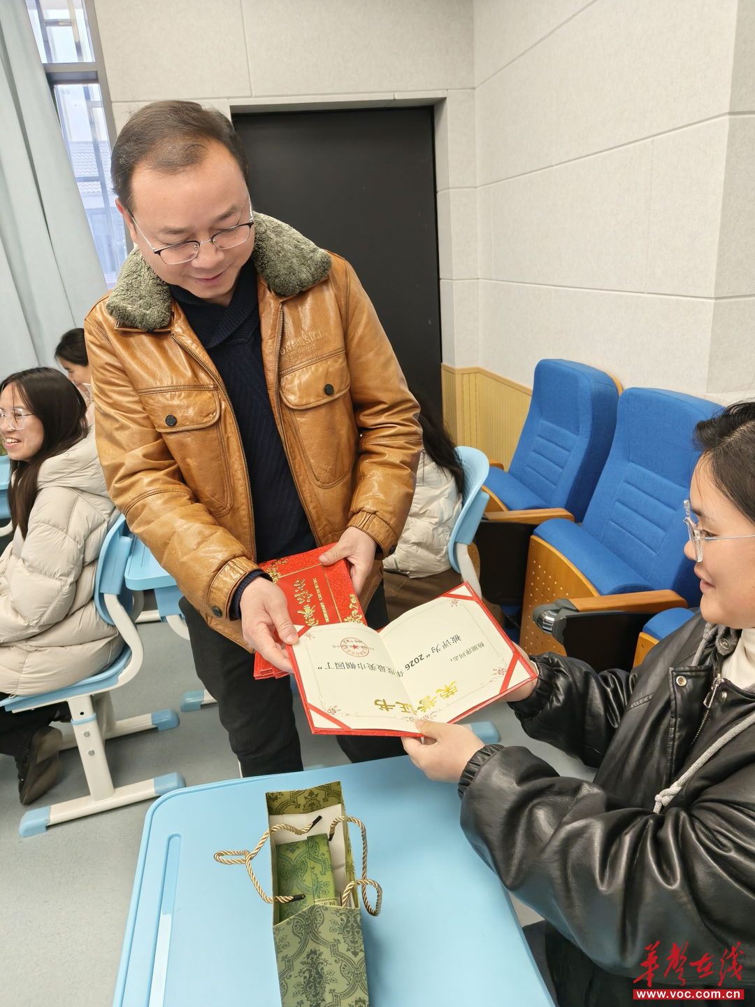 随后,庆祝大会正式举行。学校党支部书记、校长陈清清送上节日祝福和问候,高度肯定女教职工在教育教学、立德树人工作中的突出贡献,并勉励全体女教师不忘初心、牢记使命,在教育岗位上绽放最美巾帼芳华。大会对工作中表现突出的“巾帼园丁”进行表彰,校领导为获奖代表颁发荣誉证书,以榜样引领风尚,以表彰凝聚力量,进一步激发全体教职工爱岗敬业、奋勇争先的工作热情。