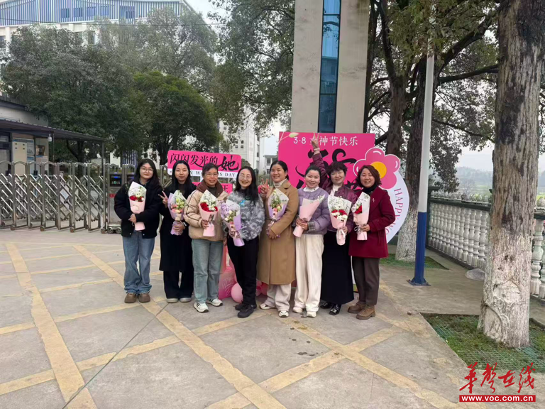 陈昌云、蒲生友早早来到校门口,等候每一位女教职工的到来。他们将娇艳的鲜花与精致的节日礼盒送到女教职工手中,一句句“节日快乐”“您辛苦了”的暖心问候,让初春的校园充满温情与感动。接过礼物的女教职工们脸上洋溢着幸福的笑容,纷纷在节日展板前驻足留影,定格这份美好瞬间。