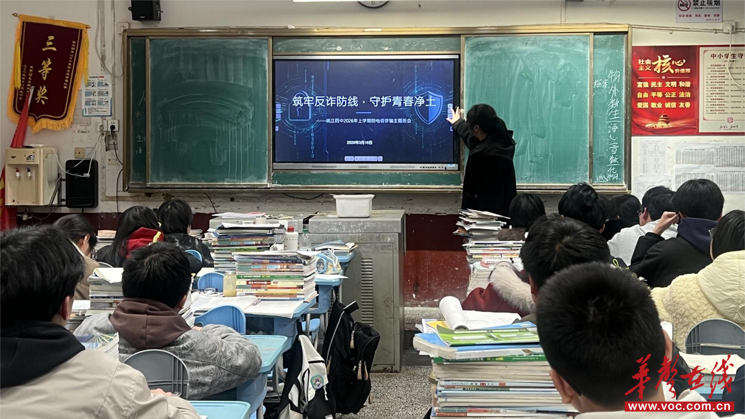 华声在线3月17日讯(通讯员 卢元明 吴雯婧)3月16日,桃江县第四中学各班同步开展了以“筑牢反诈防线,守护青春净土”为主题的防电信诈骗班会。本次活动旨在增强学生防范电信网络诈骗的意识,提升识别和应对诈骗的能力,切实守护学生及其家庭的财产安全。
