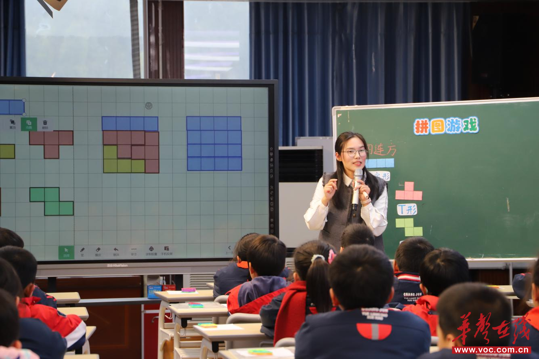 在课例展示环节,龚亚连老师执教《拼图游戏》。她紧扣低年级学情,以游戏化操作活动引导学生探究“四连方”,通过动手拼组、观察比较等具身化学习方式,有效培育空间观念,生动践行“做中学”理念。