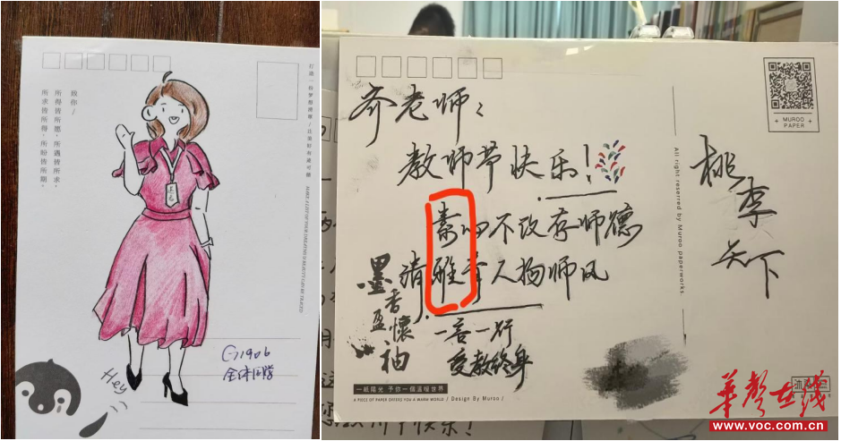 “齐老师,现在我也在给学生写卡片了。我写了一句话:‘今天你的状态比昨天好,我看见了’——就像你当年写给我那样。”
