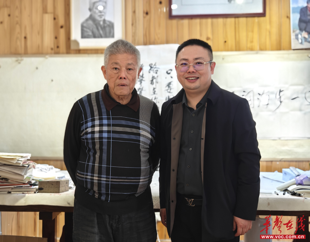 2025年11月16日下午,在长沙,诗人、策展人、湖南名人网总编辑雪马,与著名作家、中国作家协会原副主席、湖南省文联原主席谭谈先生合影留念。谭 谈