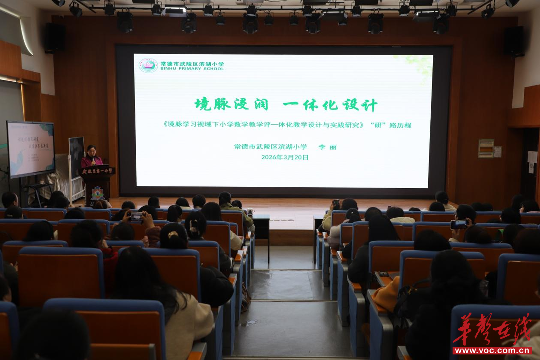 华声在线3月23日讯(通讯员 彭琳宏 薛喆茜)为扎实推进课题研究,助力教师专业成长,近日,常德市武陵区教育局举办“武陵教研微讲堂”活动,常德市小学数学名师工作室主持人,武陵区滨湖小学党支部书记、校长李丽以《境脉浸润 一体化设计》为题,面向全区教育同仁开展省级重点课题成果推介与研究经验分享。