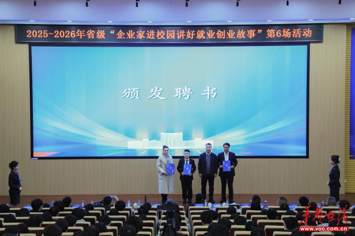 华声在线3月26日讯(通讯员 陈晓波 胡晓菡)3月24日下午,湖南省2025—2026年第6场“企业家进校园讲好就业创业故事”活动在湖南工学院明翰报告厅举行。本次活动由省教育厅主办,湖南工学院承办,省大中专学校学生信息咨询与就业指导中心全程直播。湖南工学院党委委员、副校长罗建新出席并致辞,创新创业教育中心主任王小兵主持活动。
