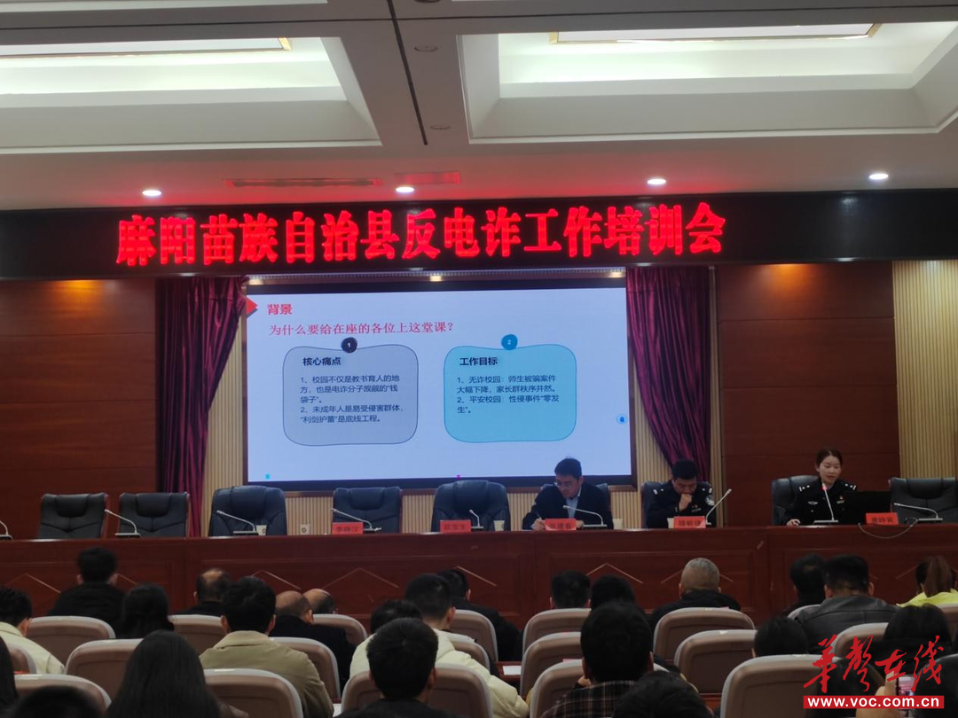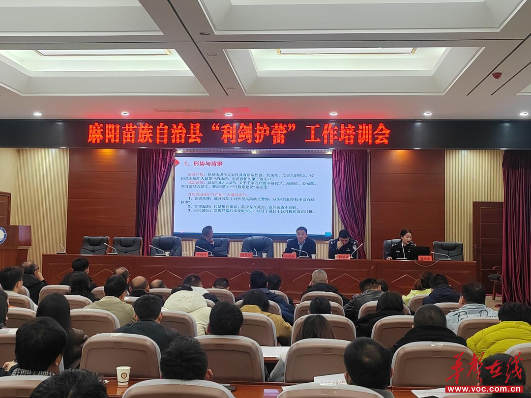 华声在线3月27日讯(通讯员 孟庆海 赵建松)3月27日上午,麻阳苗族自治县在锦江中学召开全县教育系统校园安全工作调度会议,全面部署校园安全重点工作,筑牢校园安全防线。县教育局党委委员、总督学张建春主持会议,县公安局治安大队副大队长滕敏捷、刑侦大队宣防专干王加利受邀参会并开展专题业务培训。县教育局领导班子及相关股室负责人、安保公司代表,以及全县各中小学、幼儿园分管安全工作负责人参加会议。