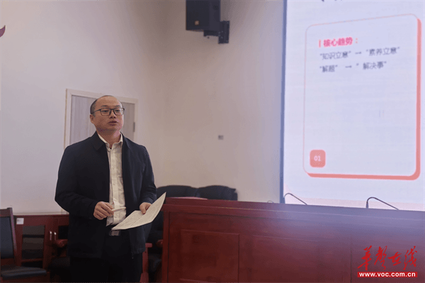 揭牌仪式后,工作室主持人王学军对三年发展规划与运行方案作专题解读。他系统阐释“立德、求是、修己、达人”的核心理念,明确“聚莲城名师,联全域资源,通一体化思政,育时代新人”的发展愿景,详细部署三年分级发展目标、常态化运行机制与多元联研实施路径,为工作室高质量发展、规范化运行、品牌化发展指明方向。