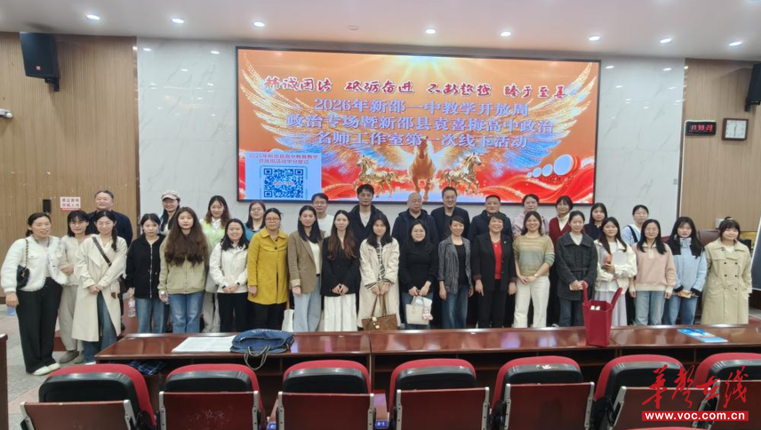 华声在线4月17日讯(通讯员 段婷 李丽梅)为深化高中思政课堂教学改革,搭建校际教研交流平台,精准把握高考备考方向,全面提升教育教学质量,4月15日,新邵县教育教学开放周政治专场活动暨袁喜梅政治名师工作室2026年首次线下研修活动在新邵一中顺利举行。全县各高中学校政治教师代表、工作室全体成员齐聚现场,共研课堂、共话备考、共促成长。