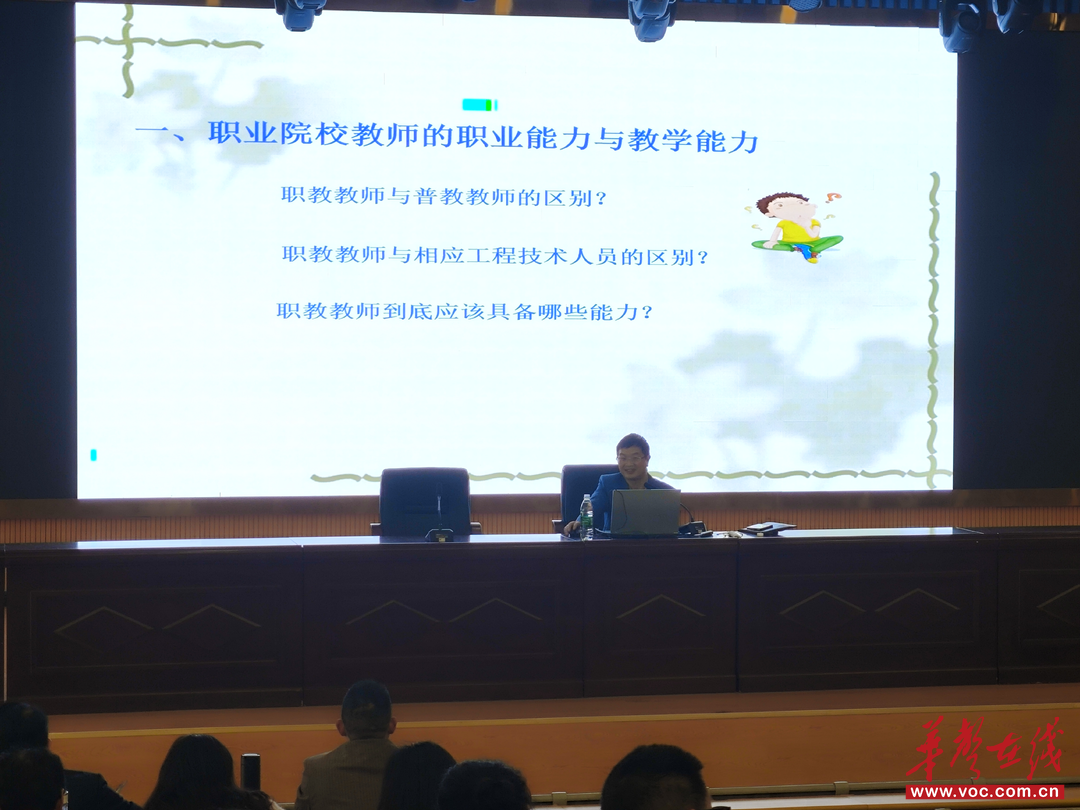本次职教大讲堂特邀湖南师范大学教育科学院职教专家肖化移博士到校专题授课。讲座紧扣新时代职业教育教学改革发展新形势,以行动导向教学为核心主线,系统全面解读职业教育教学设计方案各个核心组成板块。整场讲座理论扎实厚重、案例鲜活贴切、讲解深入浅出、语言通俗易懂,既兼具专业理论高度,又紧密贴合中职学校日常课堂教学实际,内容实用、指导性强,让参训教师听得懂、学得会、用得上。