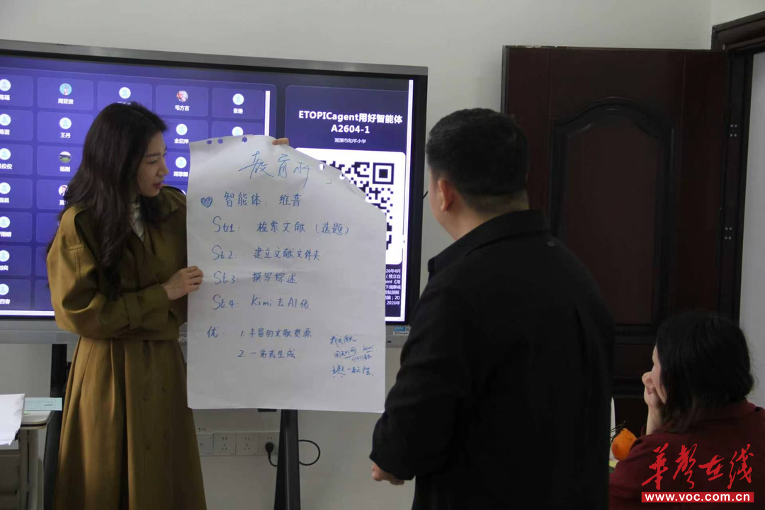华声在线4月21日讯(通讯员 周亚迎、陈瑾)近期,湘潭市和平小学(ETOPIC市和平工作站)举办以“用好AI智能体”为主题的工作坊。本次活动紧扣主题,基于教学应用与科研写作真实场景中的问题,通过任务驱动、分组实操、跨组研讨、成果交流和专家答疑等形式,探索“好智能体”在教学与科研场景中的创新应用。活动吸引了本校及兄弟单位40余名教师参与。