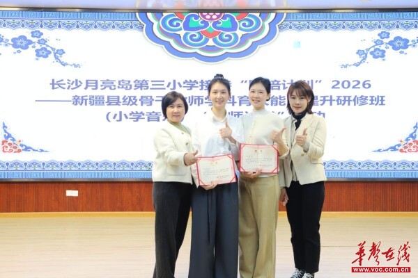 华声在线4月23日讯(通讯员 刘凯)湘江之畔,春风和煦。4月22日,“国培计划(2026)”新疆县级骨干教师学科育人能力提升研修班(小学音乐)“名校访学”活动在长郡月亮岛第三小学举行。本次活动以“湘疆共研·以美润心”为主题,深入贯彻落实新时代教师队伍建设改革要求,坚持精准施训,着力提升骨干教师教学科研能力与专业素养,扩大区域影响力,深化湘疆美育交流合作,共探音乐教育高质量发展新路。