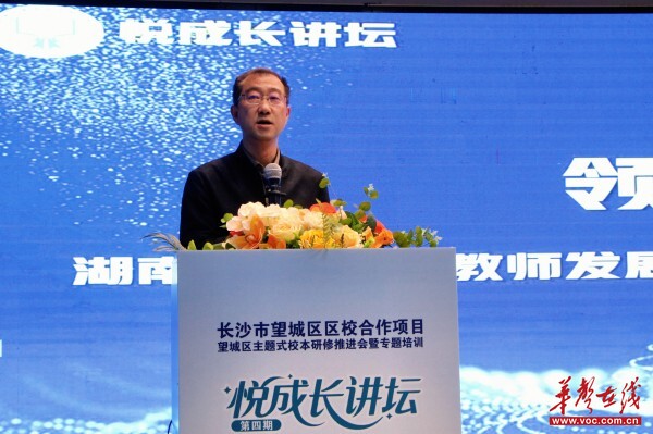 华声在线4月28日讯(通讯员 戴静斌 刘淼 王钧铎)近日,由望城区教育局主办、区中小学教师发展中心协办、雅礼丁江学校承办的“悦成长讲坛”(第四期)主题式校本研修推进会暨专题培训在雅礼丁江学校举行。活动旨在落实《湖南省校本研修高质量发展实施意见》,以“主题引领、研训融合”为核心,探索区域教师专业发展路径,提升校本研修品质。全区近200名中小学校长、教学副校长及教师培训师培养对象参加首日活动。