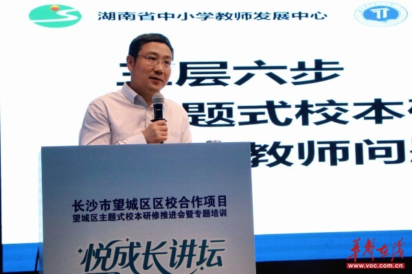 推进会后,省教师发展中心培训管理科科长黄佑生作《三层六步主题式校本研修发展教师问题解决力》讲座,解读核心要义,介绍“三层六步”研修模式及闭环管理机制,提供专业引领。